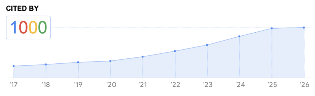 My published academic work is now cited 1000 times in Google Scholar. Thank you to everyone who recognized its value. Thank you, 89 coauthors.